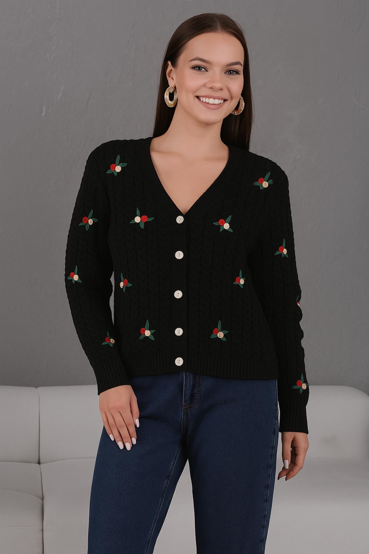Çiçek İşlemeli Triko HırkaKADIN HIRKA