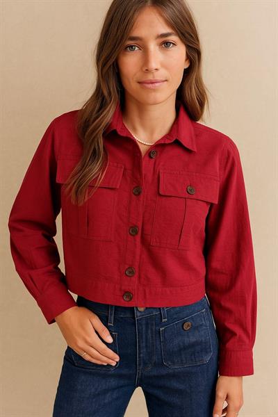 Çift Cepli Crop GömlekKADIN GÖMLEK