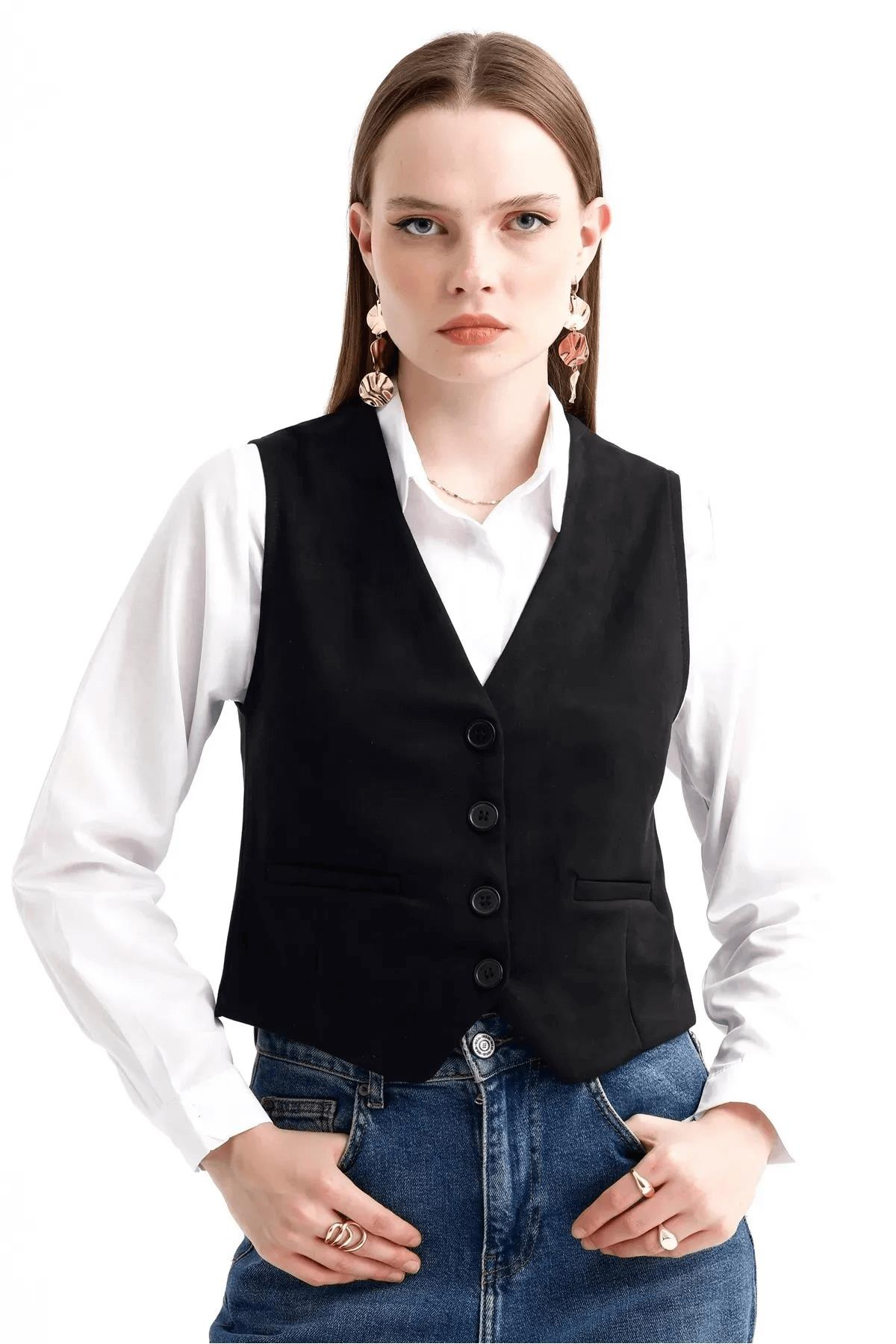 Düğmeli Süet YelekKADIN YELEK
