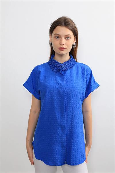 Dantel Yaka Kısa Kol Gofre GömlekKADIN GÖMLEK