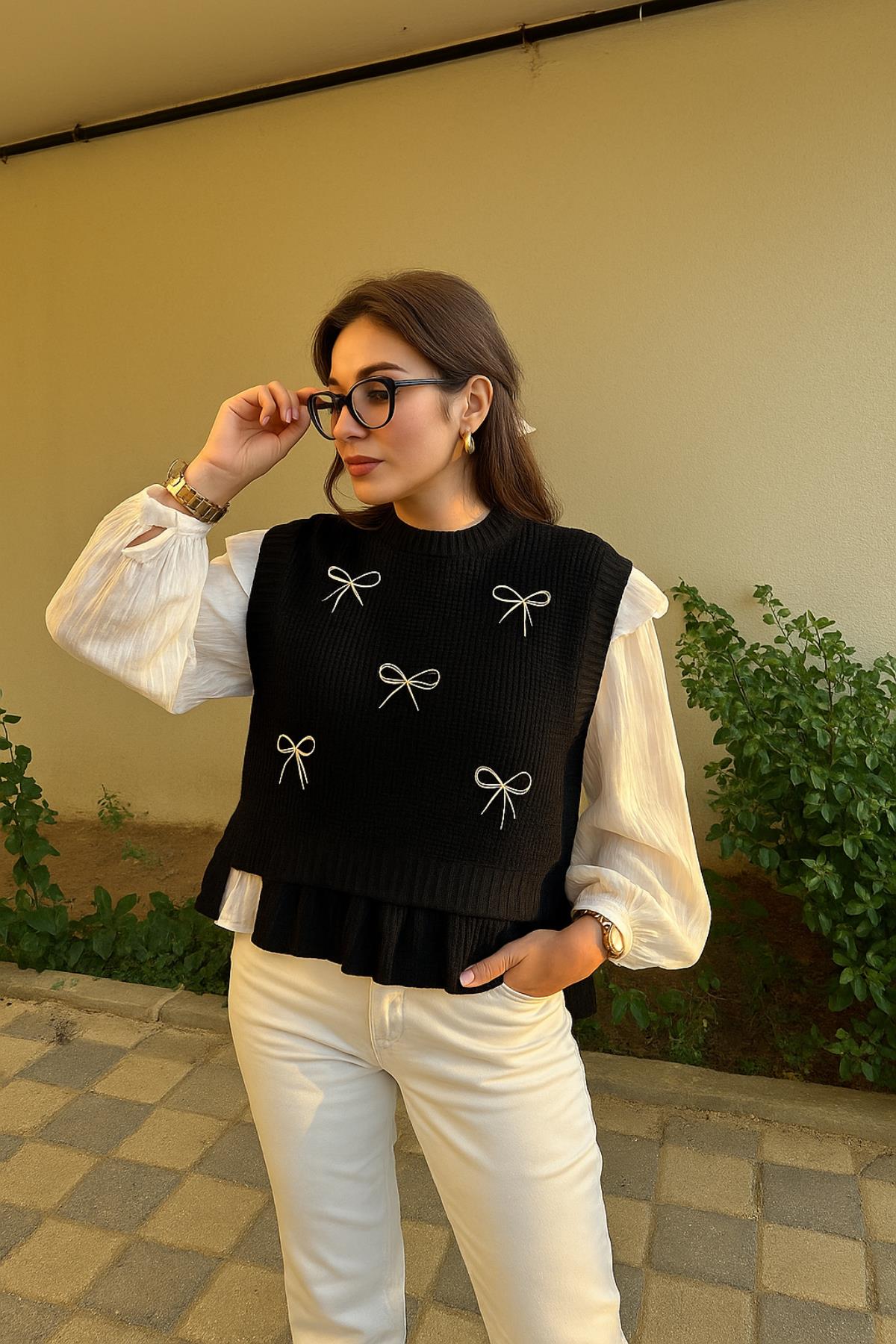Fiyonk İşlemeli Yandan Bağlamalı Süveter Fiyonk İşlemeli Yandan Bağlamalı Süveter