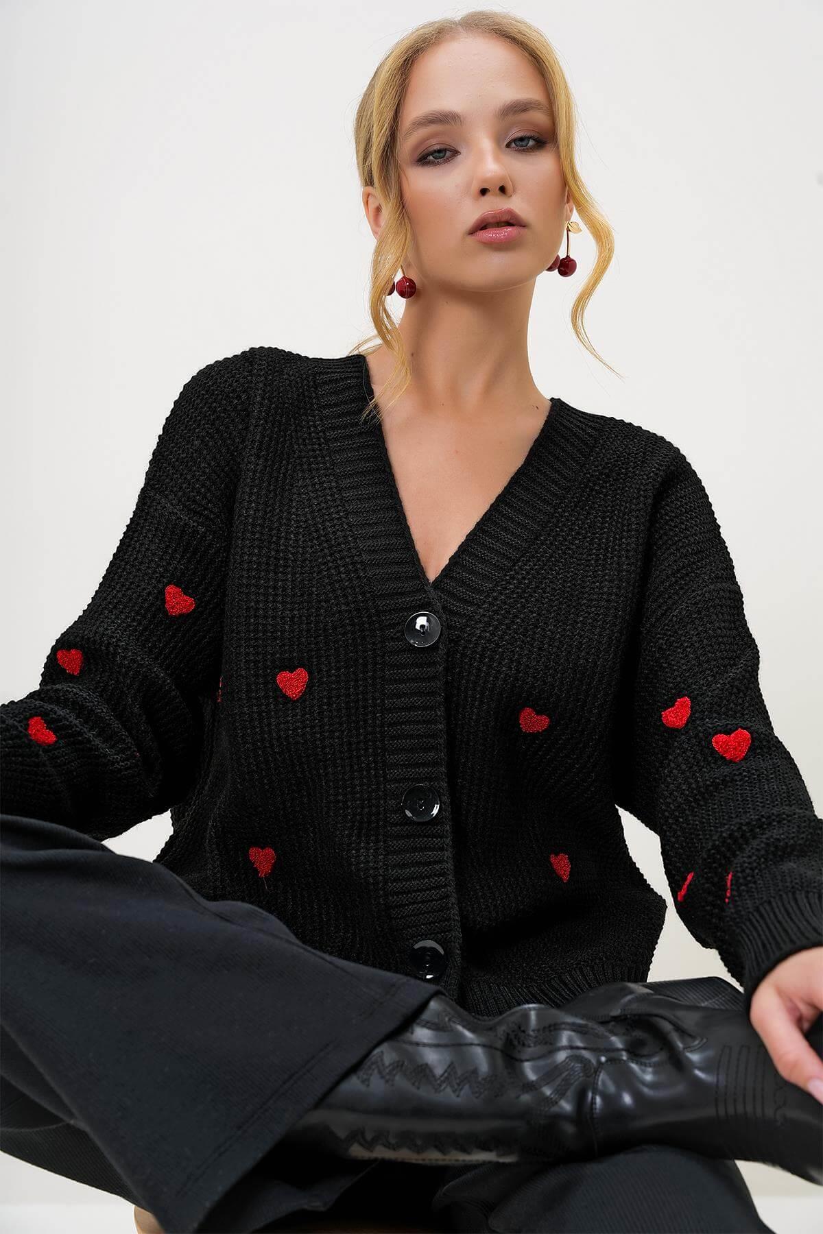 Kalp Nakışlı Crop HırkaKADIN HIRKA