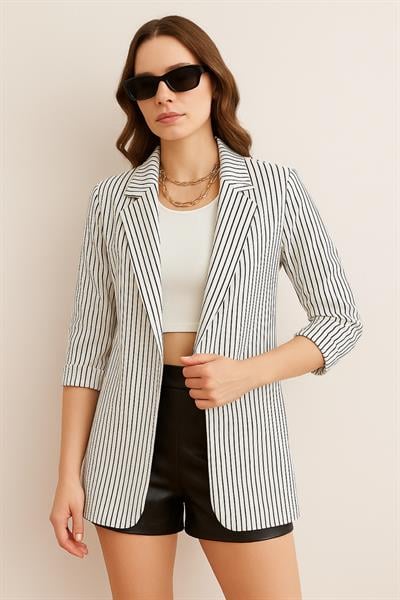 Kol Ucu Katlamalı Çizgili Ceket (IKLM-4647Y24)