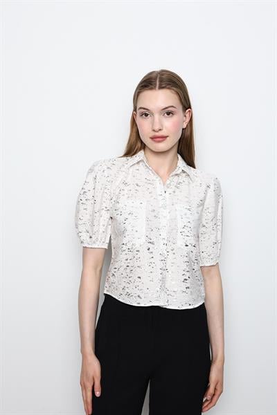 Varaklı Kısa Kol GömlekKADIN GÖMLEK